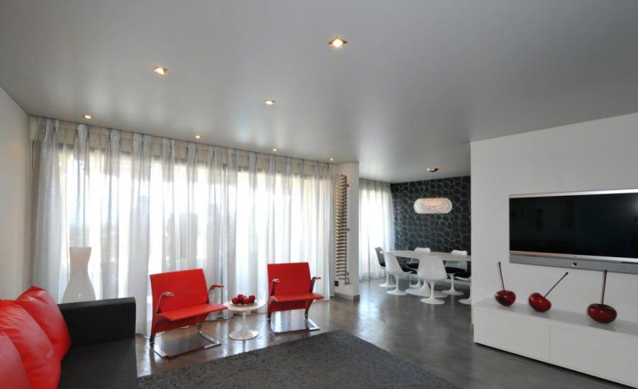 Если Вы пытаетесь добиться оригинальности и устроили ремонт в стиле хай-тек, то натяжной потолок металлик – отличный выбор! Его отличительной особенностью является игра цвета: так, при простом дневном освещении, он становится глубоким, а при искусственном начинается блестеть и переливаться разными оттенками за счет своей зернистости.