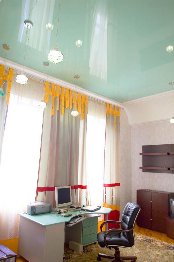 Срок эксплуатации натяжного потолка весьма внушителен (около 10 лет), а значит подобный ремонт - одноразовая трата. Под таким потолком можно аккуратно спрятать все провода и система воздуховодов, которыми изобилуют офисы, а подобранный Вами рисунок не только будет поднимать настроение сотрудникам офиса, но и создаст атмосферу уюта, в которой работать гораздо приятнее.