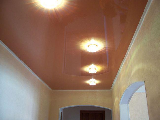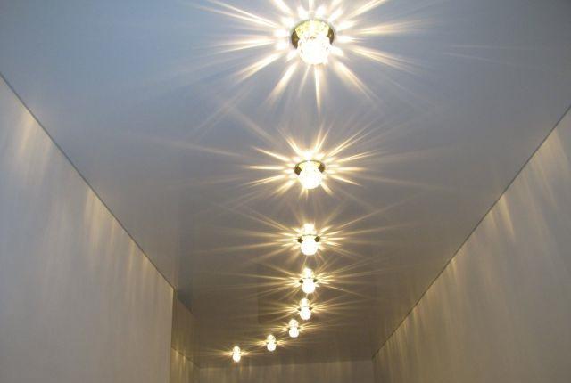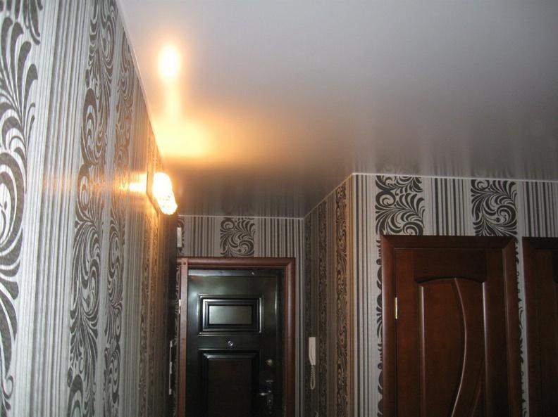 Материалы, используемые для натяжного потолка в прихожей должны быть прочным и устойчивыми в пыли и грязи, ведь приходим мы домой с улицы. Натяжные потолки, помимо этого, пожаростойкие и обладают антистатическим эффектом. Вы можете подобрать любой рисунок и материал для полотна. А грамотно созданная система освещения визуально увеличит пространство.
