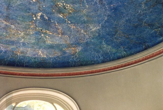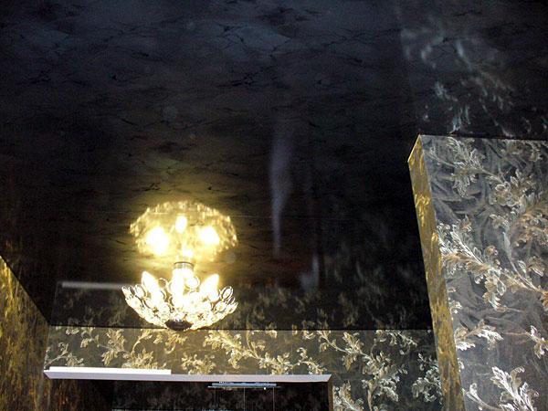 Мраморный потолок отлично имитирует настоящий камень и сливается с природным материалом. Помимо всего прочего, он устойчив к повышенной влажности и перепадам температур, поэтому будет отлично смотреться в больших саунах, магазинах ювелирной продукции и бассейнах. Так же он сможет дополнить интерьер ресторанов. Создает эффект монументальности и стабильности.