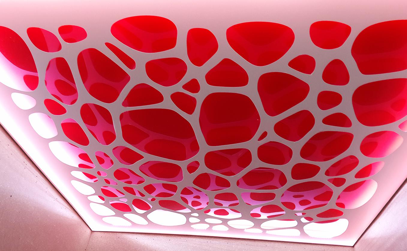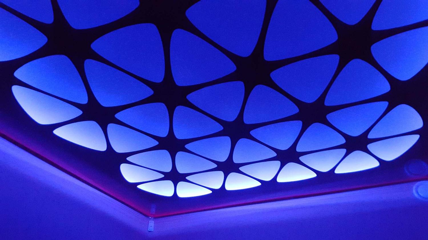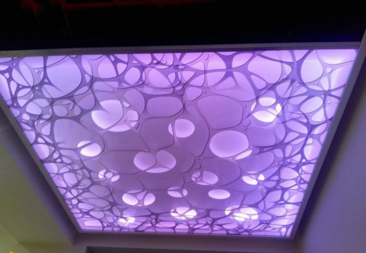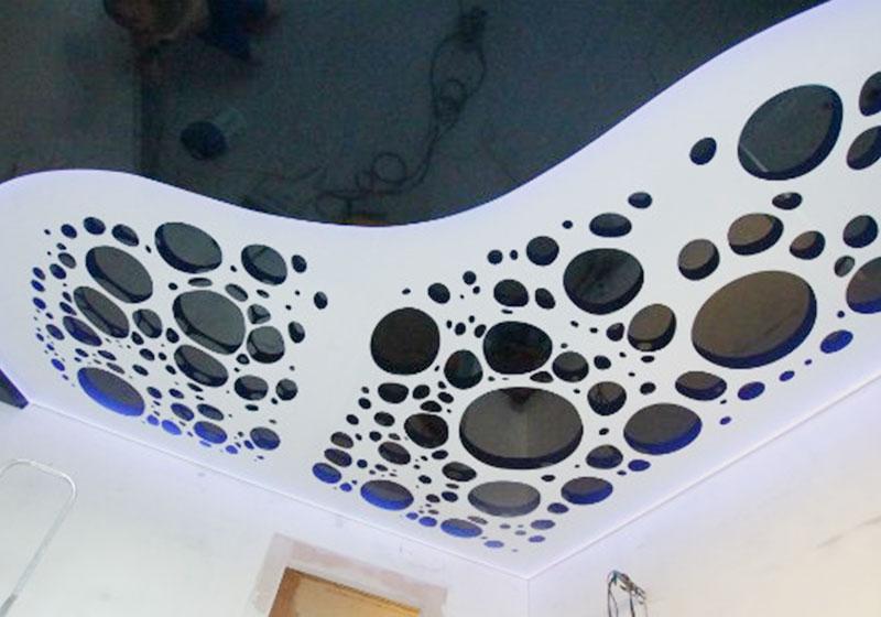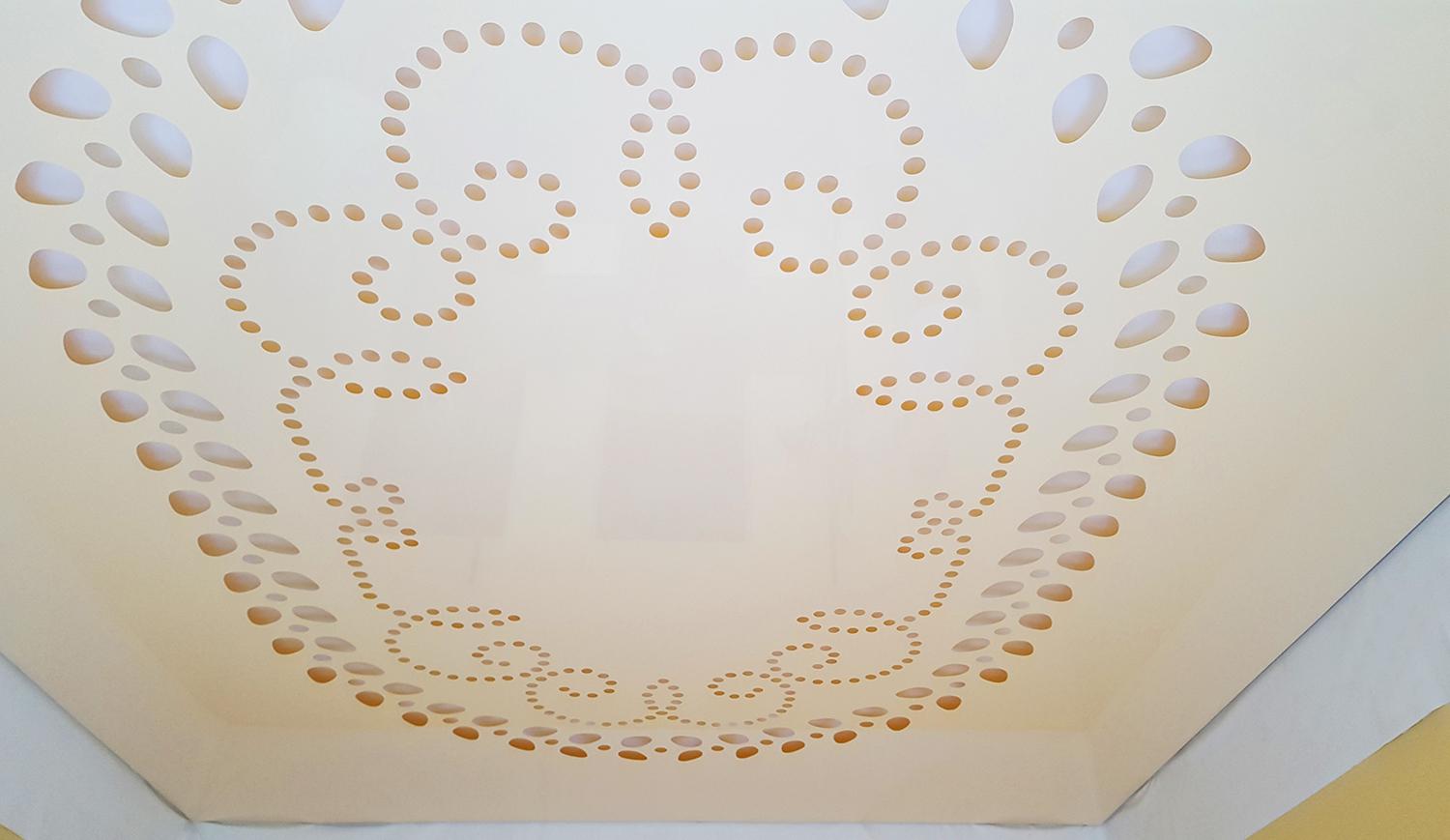 Натяжные потолки с перфорацией применяются в качестве украшения жилых помещений. Они состоят из нескольких слоёв плёнки, на которую с помощью лазерного оборудования нанесены художественные вырезы. Комбинирование материалов разной высоты позволяет создавать уникальные визуальные эффекты, придавать поверхности глубину и дополнительный объем. Интерес для дизайнеров также представляют эксперименты с освещением, которое может быть размещено под нижним слоем, между слоями, или на поверхности конструкции. На резном потолке хорошо смотрится цветная LED-подсветка, полотна в виде звёздного неба или элементы фотопечати.