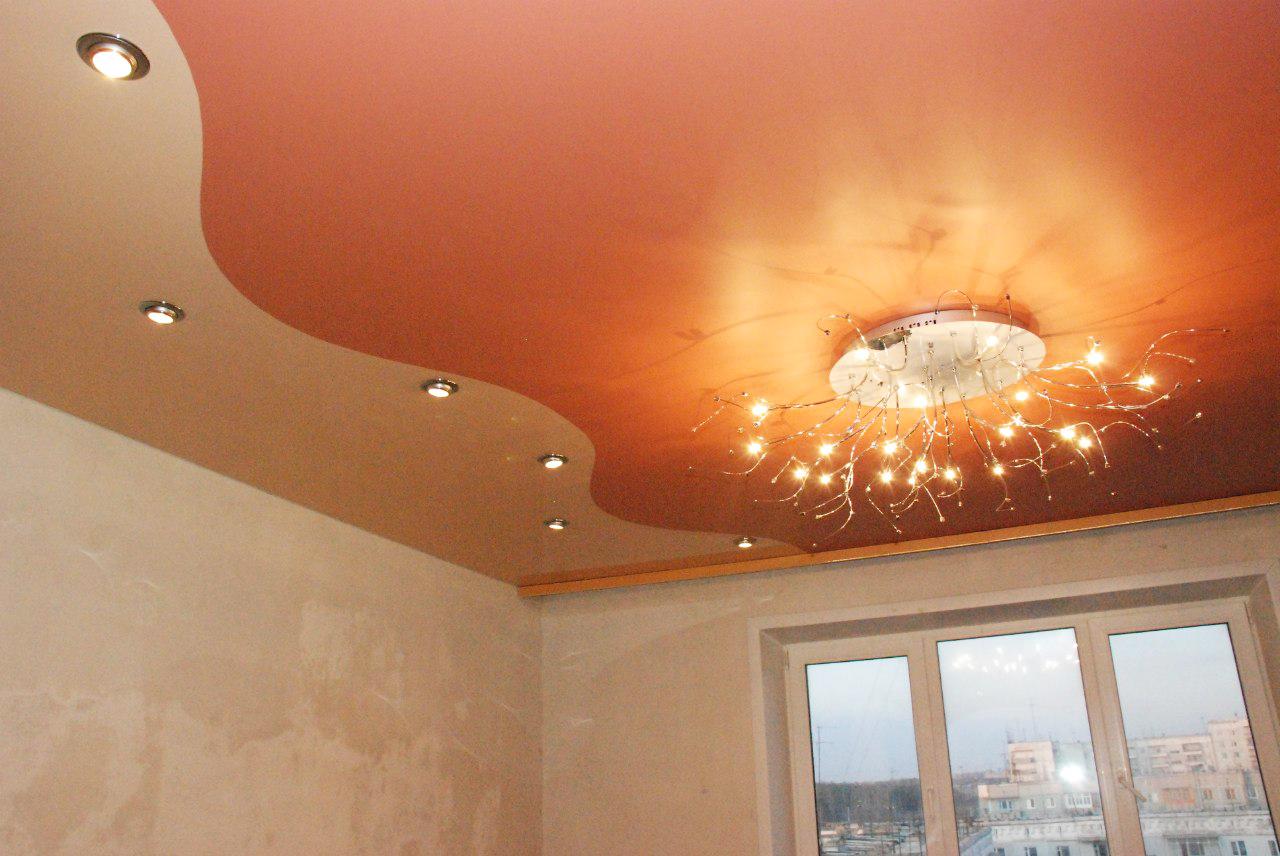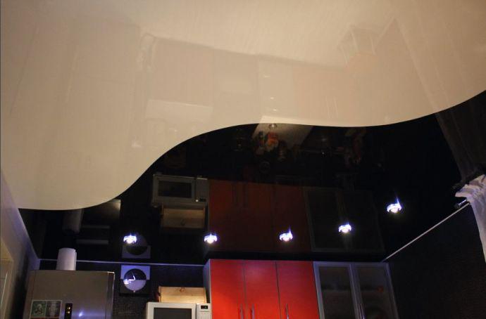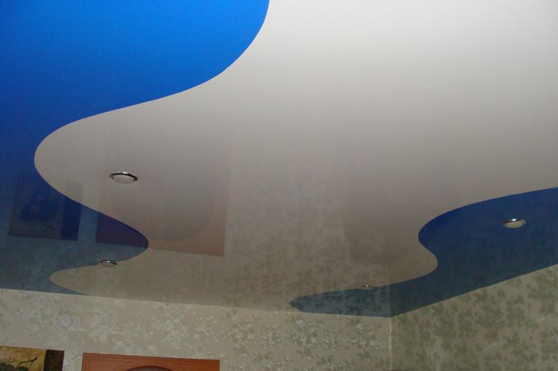 Двухцветные натяжные потолки (криволинейная спайка полотен)