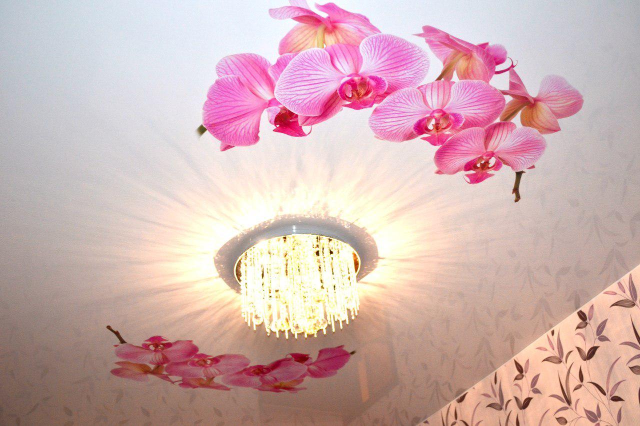 Если Вы хотите создать романтическую обстановку в своем доме, то натяжные потолки с фотопечатью орхидей – отличный выбор. Подобный потолок сможет не просто выгодно дополнить уже имеющийся интерьер, но и сам стать центральной его частью.